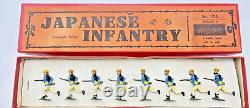 This is the1925 version with Undated Bases and Pale Blue Uniforms, comprising: 8 x Charging Infantry all Fixed Arm with Rifles. Some minor paint chips otherwise generally very Good overall commensurate to age, contained [strung] in a generally excellent [minor storage wear] printed orange lid label. N very good used condition with no real issues with the normal. Finish and painted to the normal high standard for that period;superb collectors set for age.