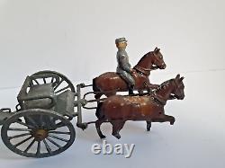 -RARE BRITAINS/SIMON ET RIVOLLET (DEPOSE SR FRANCE) WWI GUN TEAM + CANNON 1920 -- - AS PER PICTURES... This very rare stunning piece comes as pics, consists of 2 horse team with limber, with one outrider as pics with swing arm and broken whip, both horses are present but one has only 3 legs complete with wire harness, it is correctly marked Depose France on base of ammunition wagon. The cannon has got Depose France and the letters S.